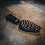 長年のバイク制作の知識から硬すぎず、柔らかすぎないウレタンチップのスポンジをオリジナルのメッキを施したシートパンに貼ってあります。